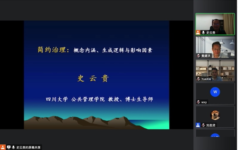 举办的东吴公管系列讲座在线上召开。本期讲座邀请四川大学公共管理学院院长、教授、博士生导师史云贵主讲,题目为简约治理:概念内涵、生成逻辑与影响因素。讲座由调教漫画