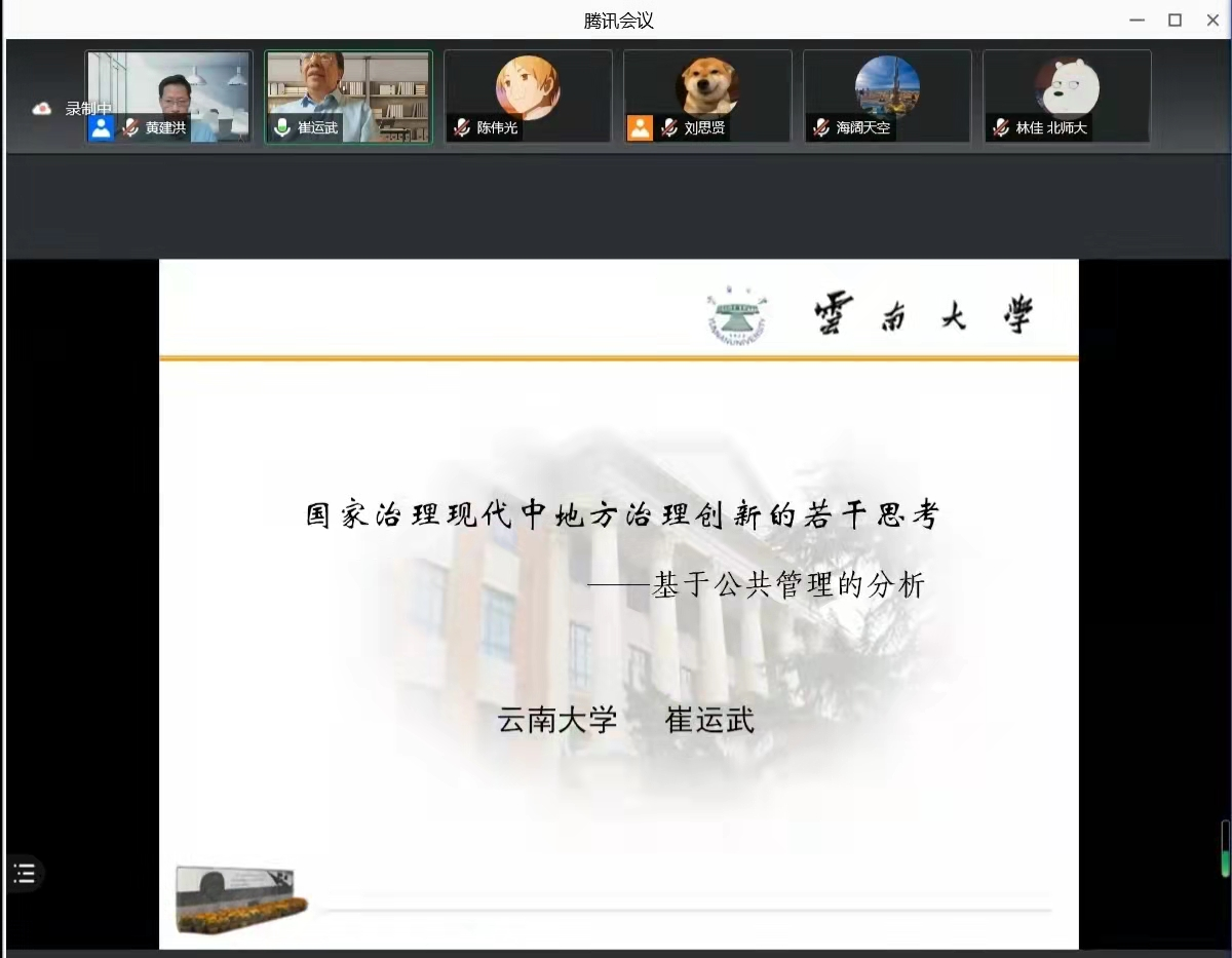 主办的东吴公管系列讲座在线上召开。本期讲座邀请云南大学公共管理学院教授、博士生导师、教育部高等学校公共管理类学科专业教学指导委员会委员崔运武主讲,题目为国家治理现代化中地方治理创新的若干问题——基于公共管理的分析。讲座由调教漫画