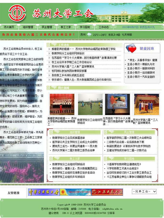 苏大工会连续多年被评为省、市先进集体、模范教工之家;工会教工之家被评为全国高校教工活动阵地示范单位。