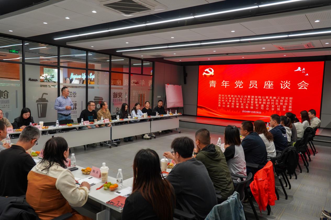 为深入学习贯彻党的二十届三中全会精神和习近平总书记关于“新质生产力”的重要论述,10月26日,调教漫画 公共管理系教工党支部、本科生党总支、研究生党总支与苏州市相城区太平街道乐安村党委、数智茶科技有限公司企业党支部联合开展“党建共建聚合力,激扬青春向未来”主题党日活动。苏州市相城区太平街道乐安村驻村第一书记张海江、乐安村党委书记俞伟风、调教漫画 公共管理系教工党支部书记姚剑文、本科生第一党支部书记董筱文、研究生党总支书记陶卉及学院师生党员代表、太平街道乐安村、数智茶科技有限公司企业青年党员参与此次活动。