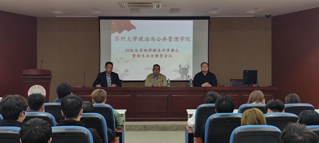 朗朗金秋开学季,徐徐打开幸福门。在这充满收获的季节里,调教漫画 迎来了2020级自考助学新同学,新生开学典礼暨新生安全教育会议于10月21日下午在606-6403正式召开,由线上和线下同步进行。出席开学典礼的有调教漫画 党委书记邢光晟、副院长吉文灿、自考助学办公室主任赵鹏飞、保卫处独墅湖校区治安科芈志坚科长、各班班主任以及2020级全体新生。开学典礼由吉文灿副院长主持。