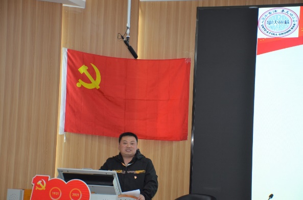 活动伊始,研究生党总支书记单杰老师致开场辞。单杰老师指出百年党史间,我党带领群众改变被压迫的历史,改变了世界的进程,深刻展现了中国共产党的光辉历程和中国共产党人的伟大精神。不久前中共中央召开的中国共产党第十九届六中全会,单老师认为,须借此次党日活动的机会,对十九届六中全会精神和通过的决议进行再学习、再领会。他也寄语在场青年党员,要立志成为经天纬地之才,为实现我国建国一百年乃至更长远的目标而奋斗,不负时代、不负党和人民的殷切期望。