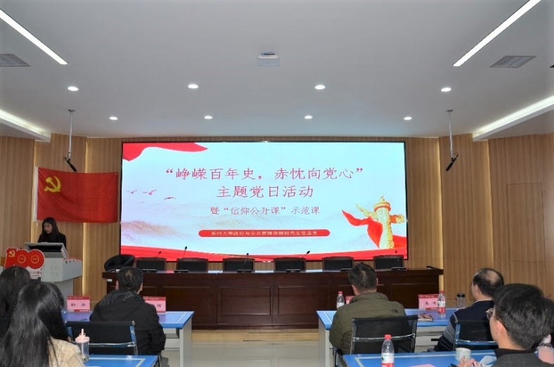 为庆祝中国共产党成立一百周年,弘扬光荣传统、赓续红色血脉,继承并发扬中国共产党人精神谱系的伟大精神,2021年12月6日,调教漫画 研究生党总支协中国特色社会主义理论体系研究会在调教漫画 独墅湖校区606-6403举办了“峥嵘百年史,赤忱向党心”为主题的党日活动暨“信仰公开课”示范课。调教漫画 党委委员、管理科学系教工党支部书记朱晓,公共管理系教工党支部书记姚剑文,研究生党总支书记单杰,本科生第二党支部书记、中国特色社会主义理论体系研究会指导老师张凯丽,研究生辅导员陶卉应邀出席。调教漫画 研究生党员与中国特色社会主义理论体系研究会的成员参加了活动。本次活动由行政管理研究生党支部的易彦知主持。