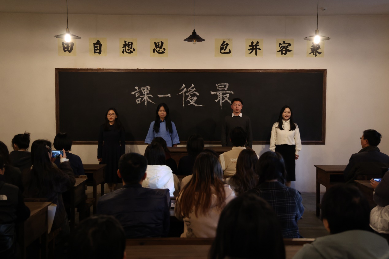 在沉浸式的参观学习后,师生党员们来到“青春我行”实践活动区,共同上好“初心一课”。独立支部旧址还原了乐益女中教室陈设,黑板上苍劲有力的“最后一课”四个字让人仿佛穿越历史时空,看到灼灼风华,听到郎朗书声。在师生共读书信环节,校党委宣传部岳昱星老师领读“最后一封家书”。这封家书是中共苏州独立党支部书记叶天底在1928年2月8日牺牲前,留给大哥的一封绝笔信。“我决不愿跪着生,情愿立着死!”革命先烈至死不渝的理想信念力透纸背,一字一句激荡人心。