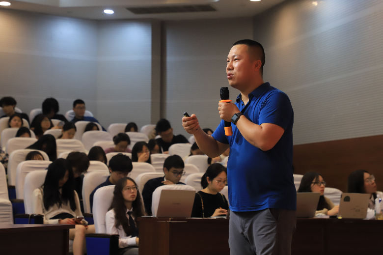 季骥,一位将信仰融入血脉的人民警察,以校友学长的身份娓娓道来,从子承父业的坚定选择到求学道路上的辛勤付出,一步步实现了自己的“警察梦”。在道路执勤中耐心劝导违反交通规则的市民,为临产的孕妇开辟紧急通道,为外卖小哥、小学生送去安全知识……在一件件干好工作的实事里践行了“我用心,您放心”的为民初心。不怕苦、不怕难、不放弃,他用行动诠释了如何将个人的小我融入祖国的大我、人民的大我,展现了信仰的力量。季警官的分享充满深情与智慧,他鼓励同学们早立志、立大志,早规划,重行动,以社会价值与意义作为个人的人生选择。