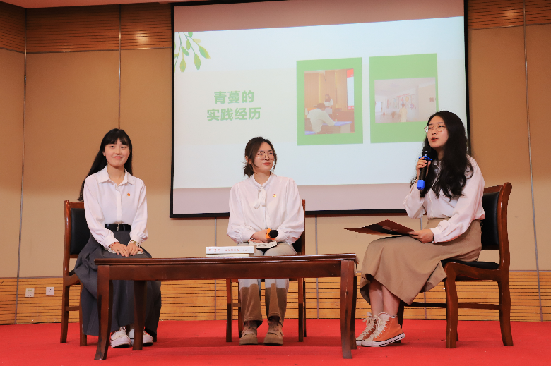 一年来,依托党团共建、校地共建,调教漫画 的青年学子纷纷走进社区,在基层岗位上接受能力锻炼、思想淬炼、意志磨练,真正长才干、壮筋骨、作贡献。“惠寒”社区青春行动基层社区挂职副书记、团建指导员何青蔓、王思云、何嘉丽等三位同学走上讲台,以互问互答、交流互动的方式分享了参与基层治理、乡村振兴的心得感悟。