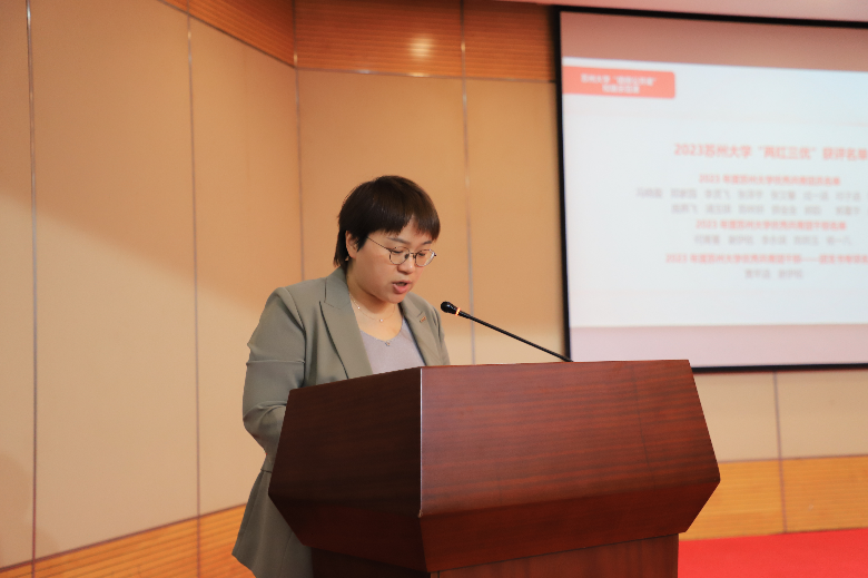 学院团委书记董筱文宣读2023年度调教漫画 “两红三优”获得者名单。