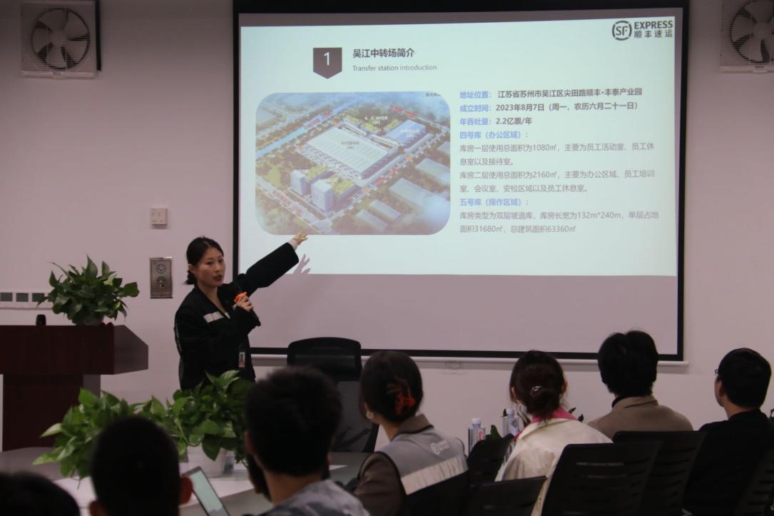 中转场负责人为同学们详细介绍了顺丰吴江中转场概况。该中转场作为顺丰刚成立的中转场,位于江苏省苏州市吴江区尖田路顺丰丰泰产业园,在技术创新方面拥有领先地位,推出了实时跟踪系统、智能仓储等先进技术。这些技术的应用,使得顺丰速运的快递服务更加高效、准确和便捷。