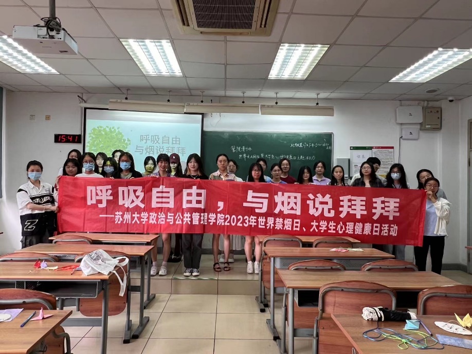 青年志愿者协会于独墅湖校区302-2208教室开展了“呼吸自由,与烟说拜拜”世界无烟日暨大学生心理健康日主题活动。在这个绚烂缤纷的时节,为强化禁烟意识、提高禁烟率,通过宣传、教育和互动,更好地维护大学生群体身心健康,调教漫画