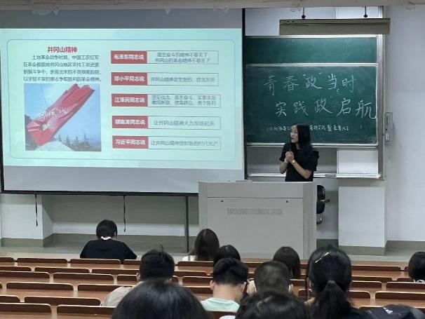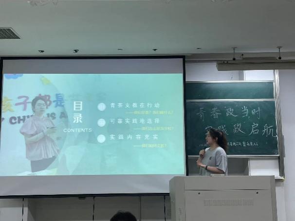 青茶支教团队负责人、21级行政管理专业朱娅妮从前期准备、课程设计、如何联系学校以及实践意义为同学们分享了她在青茶支教团的实践和心路历程。她通过展示青茶为支教所做的前期准备和铺垫,强调了预案在团队实践中的重要性,团队需要提前对实践内容有完备的认知和规划。她认为,“大学是从象牙塔到社会的过渡阶段,因此暑期社会实践的意义在于鼓励大家走出校园,看到社会”。