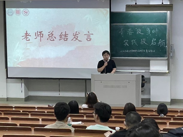 最后,董筱文老师对本次大会作出总结发言。她指出,大学生应当利用好暑期社会实践的机会得到锻炼、提升自己、积累经验。从社会实践选题、团队成员的选择等方面对大家指明了方向,并表示学校和学院将尽所能地为同学们的暑期社会实践保驾护航,提供帮助。此外,她还强调同学们应在社会实践中具有问题意识、研究意识,利用社会实践平台,在自己的专业学习方面更上一层楼,并在最后表达了对同学们都能收获实践硕果的殷切期盼。