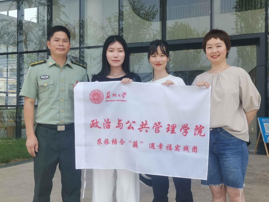 图一为实践团成员与当地负责人合影