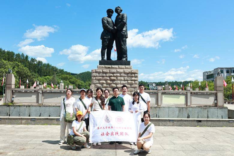 蓝天白云下的朱毛会师广场,实践团成员留影