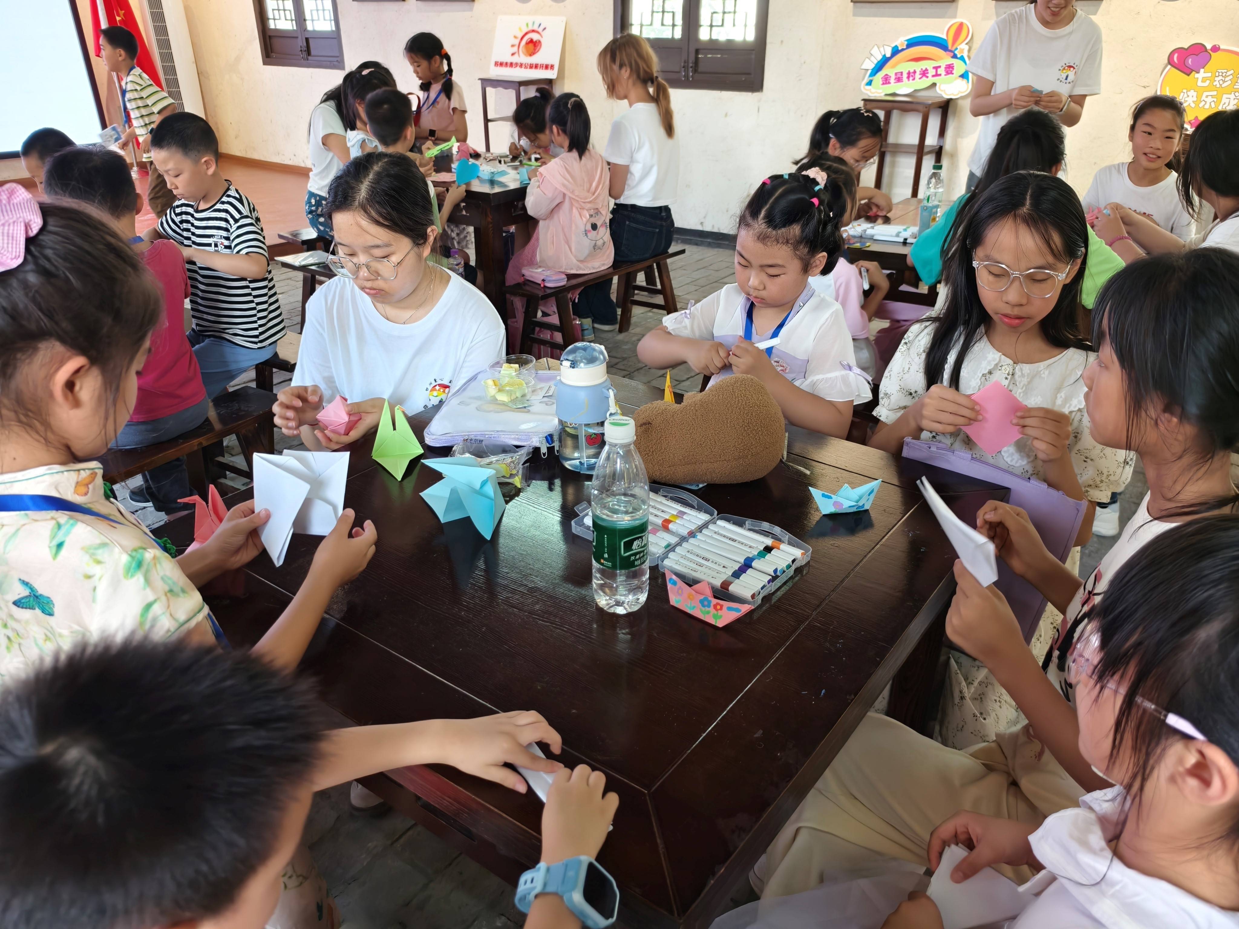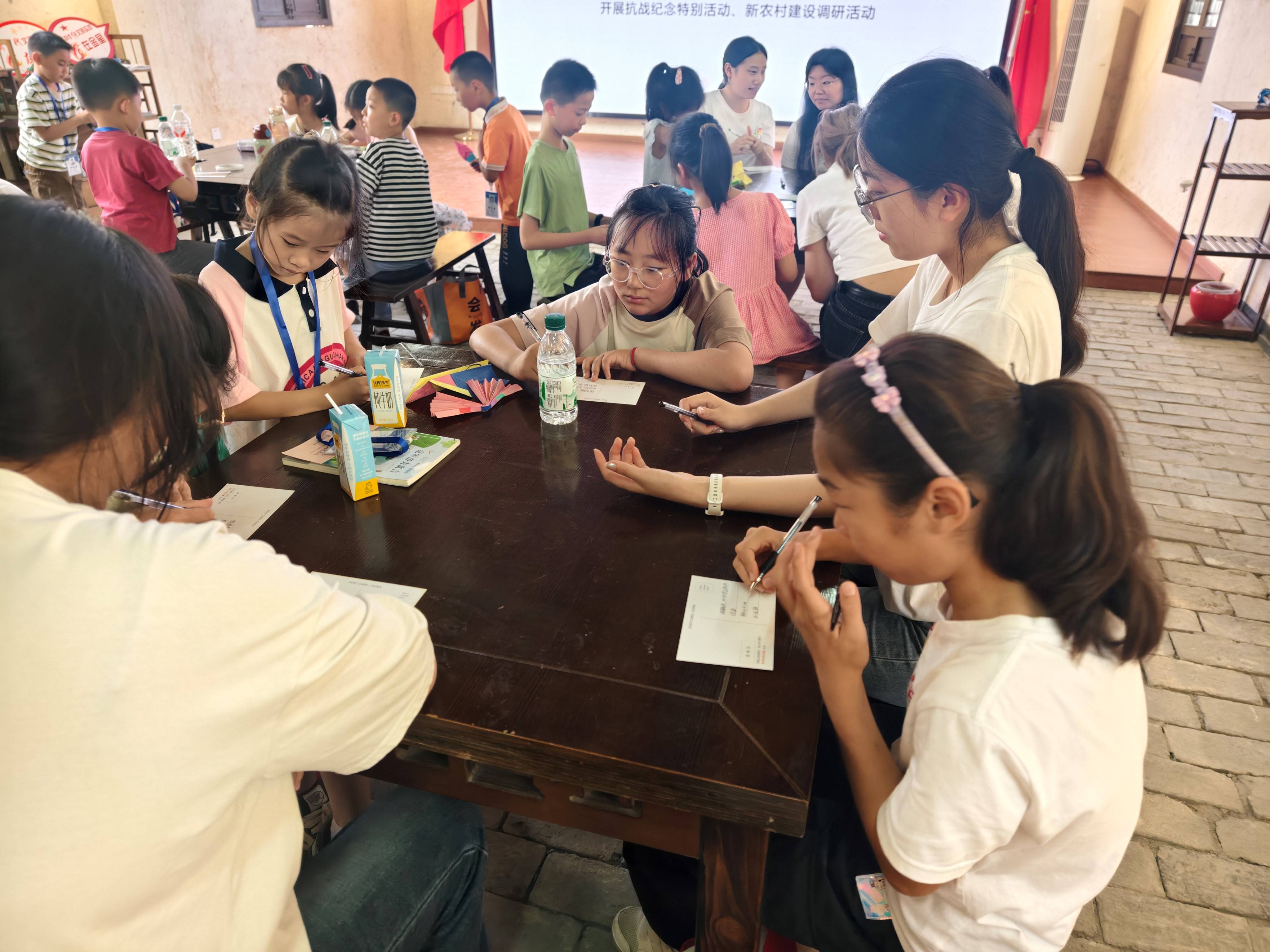 实践团成员化身"心灵引路人",以艺术为媒搭建情感桥梁,引导青少年通过艺术创作表达爱国情怀。孩子们在绘画、折纸、写明信片的过程中,将对和平的祝愿和“强国有我”的决心融入其中。每一件作品都是孩子们纯真心灵的写照,每一次陪伴都是薪火相传的印记。孩子们用稚嫩的笔触和灵动的创意,描绘出他们心中的和平世界与强国梦想,展现了新时代青少年的爱国热情与责任担当。