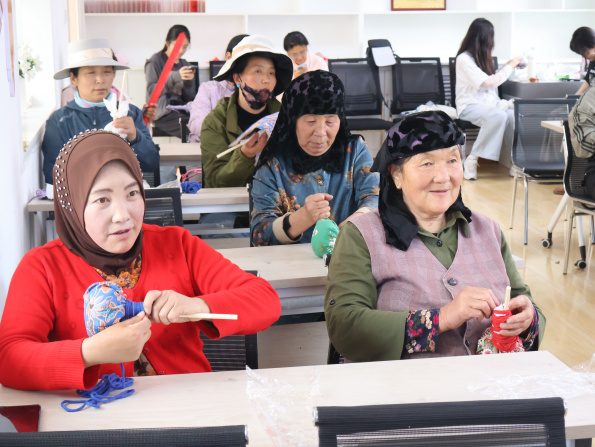 图为社区老人制作中国结 王袁颉供图