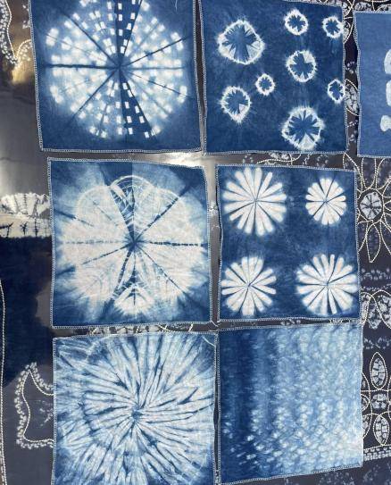 最激动人心的时刻就是拆绳。当孩子们小心翼翼拆开线绳,蓝白相间的图案“蹦” 出来的瞬间,欢呼声此起彼伏:有的图案像夏夜的星空,星星点点错落;有的像山间绽放的野花,灵动又俏皮。每一块布料都成了“孤品艺术”,就像白族同胞走在山间地头,随手就能撷取自然灵感,把云南的山水灵气,都染进了这一方布料里,带着浓郁的云南当地文化印记,怎么看都看不够!