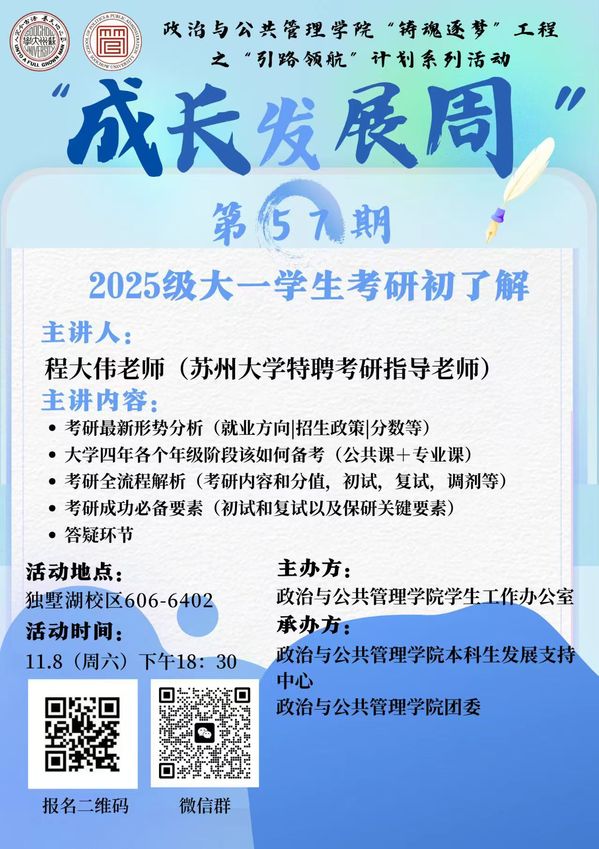 海报 | “铸魂逐梦”工程“引路领航”计划——成长发展周第57期《2025级大一学生考研初了解》