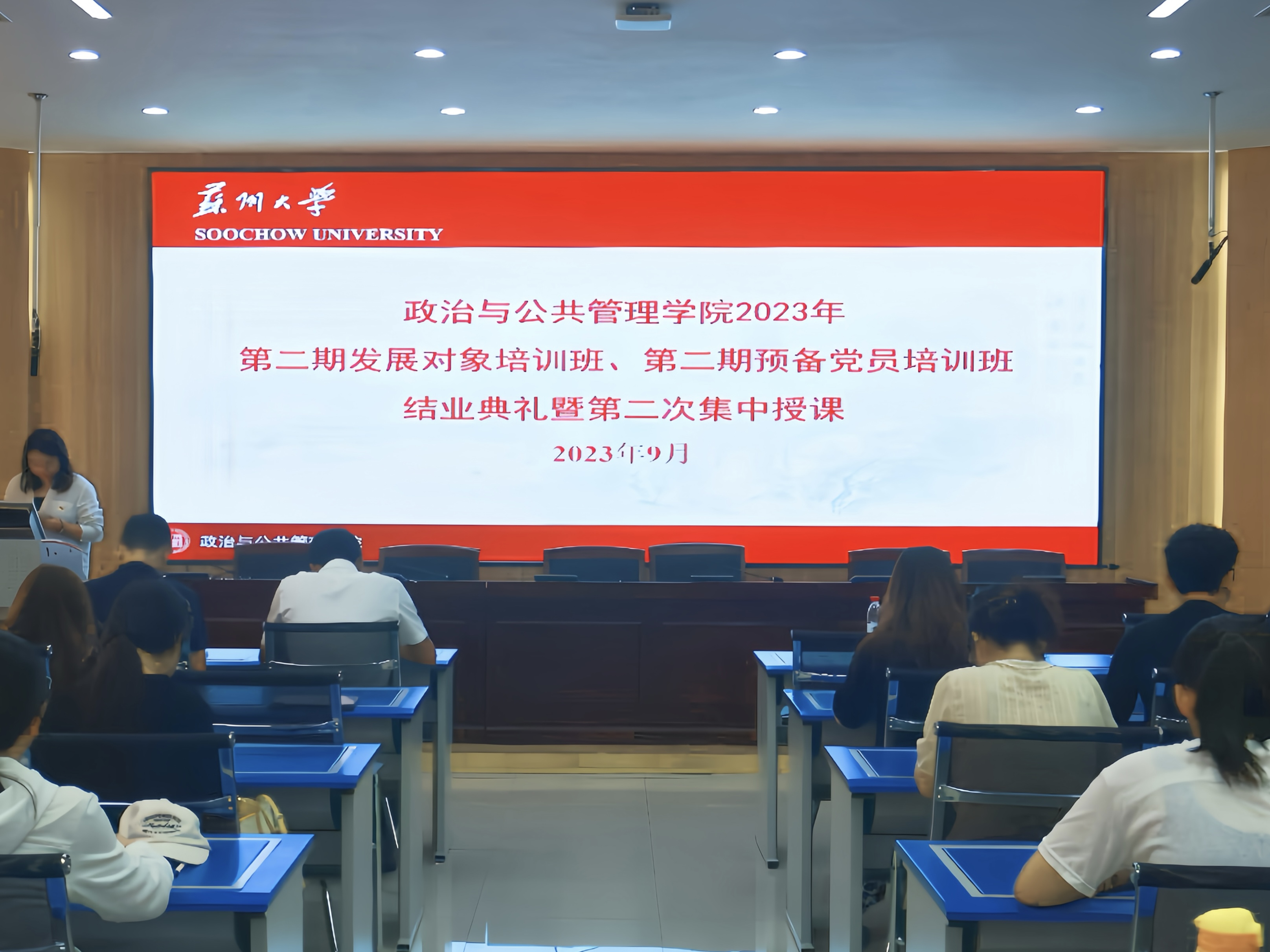 在同学们热烈的掌声中,本次授课圆满结束。经过短暂的休整后,学院2023年第二期发展对象培训班、第二期预备党员培训班结业典礼正式开始。
