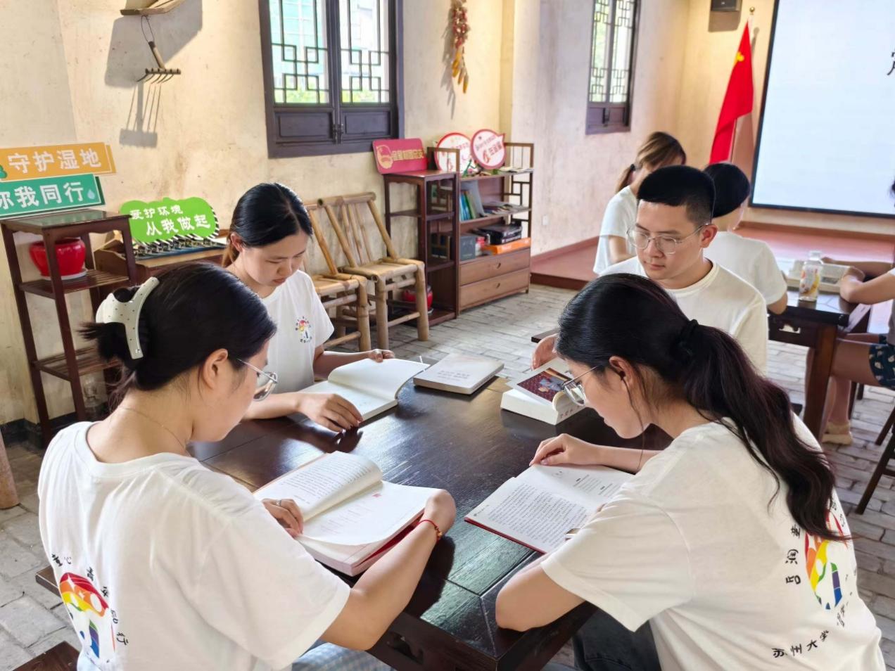 学院建立校社对接机制,由学院暑期社会实践团队对接联络江苏、云南、河南、湖南等省的儿童,针对不同书籍和学生群体设计个性化的领读方案,为当地儿童建立详细的阅读档案。通过数据分析,及时调整领读策略,提高学生阅读速度、理解能力和表达能力。以苏州市青年学习社“调教漫画 中国特色社会主义理论体系研究会”、“小红柚实践团”为主要力量的“红色讲师团”,结合支教点的红色资源,开展“点单式”讲座、“互动式”读书分享会。蒲公英之诺支教实践团、青茶支教团、吴石榴实践团分赴河南、湖南、西藏,将趣味课堂与读书行动有机结合,带领当地青少年以学促思、以思促学,在书籍中汲取奋进力量。