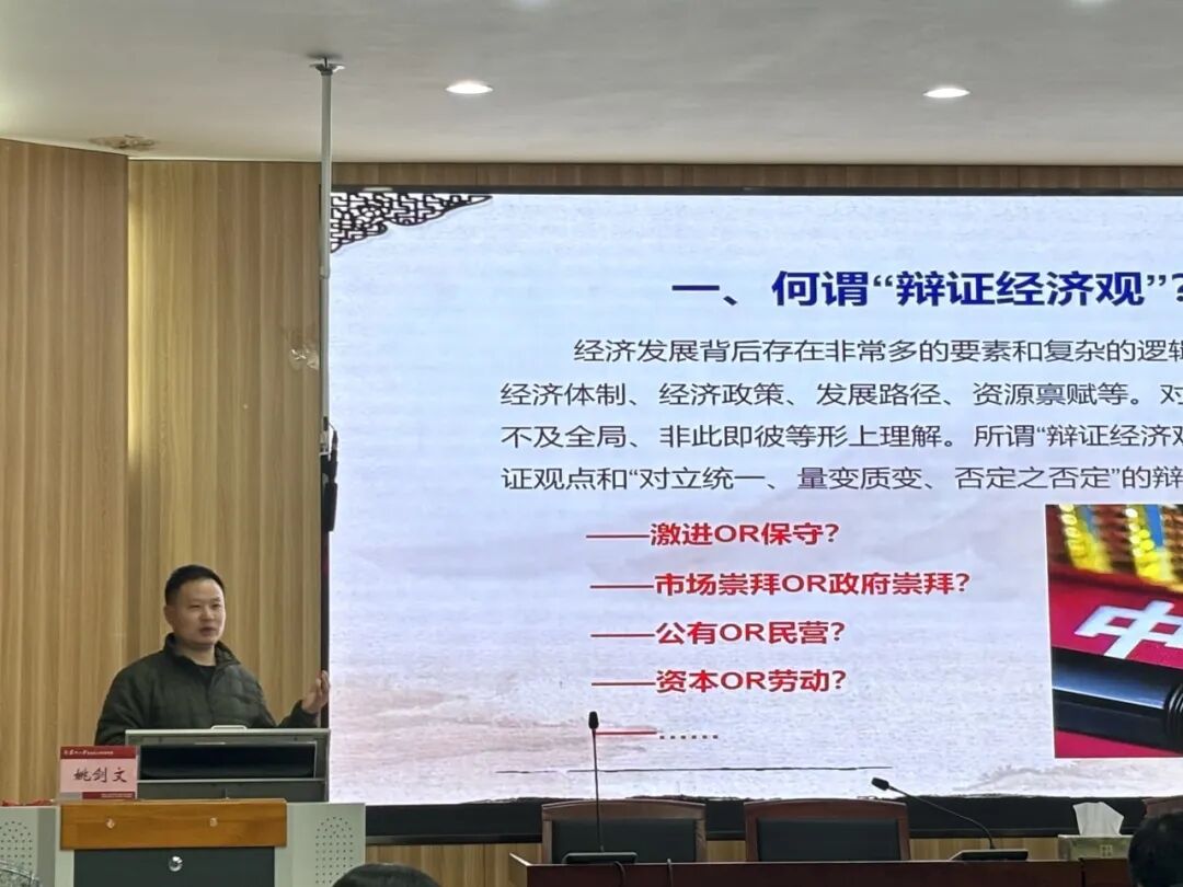以读书节、五四青年节为契机,学院青年学者带领青马尚思班学员一起阅读《习近平总书记系列重要讲话读本》、《为什么是中国》和《美国反对美国》,并展示阅读成果。以党员发展与培训为契机,姚剑文等老师开展专家领读专题小组活动。学院研究生会、研究生党总支、中国特色社会主义理论体系研究会联合举办“经济赋能现代化,全球视野启新程:新时代中国青年奋进之路”读书会之“导读领航,启智润心”——启航导读仪式,姚剑文老师以“‘辩证经济观与复合型经济’:中国式现代化的经济实践与全球视野”为题开启专家导学,为青年学生理解新时代经济赋能现代化提供了深刻学理支撑。