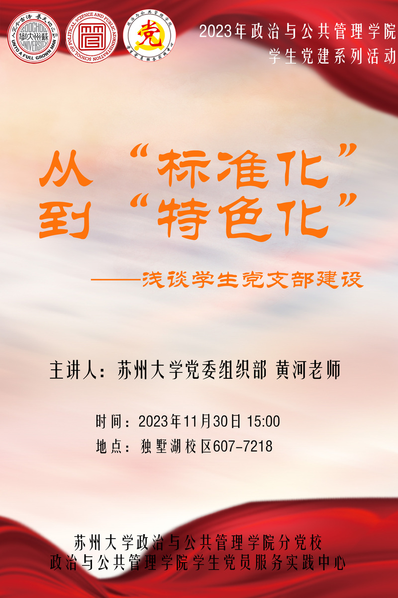 海报 | 讲座:从“标准化”到“特色化”——浅谈学生党支部建设