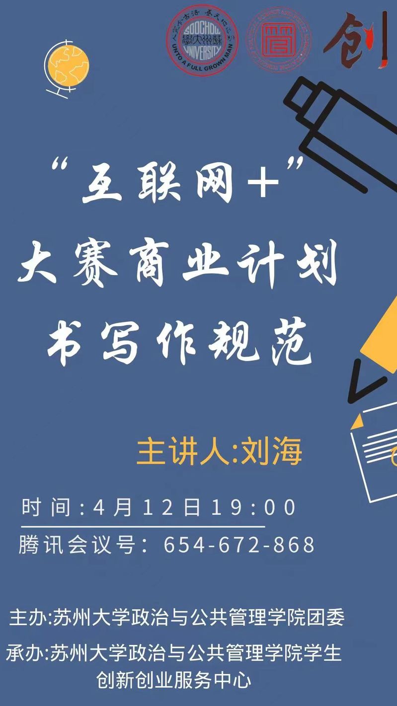 海报|“互联网+”大赛商业计划书写作规范讲座