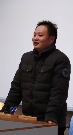 图为学院党委委员朱晓、郭彩琴、吉文灿老师点评