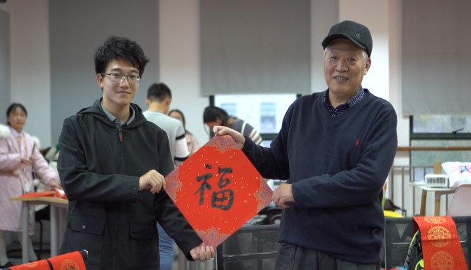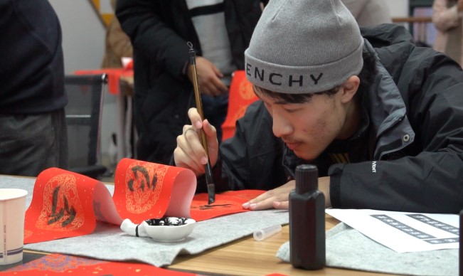 12月25日下午,在调教漫画 创意工作室,学院爱好书法的老师同学铺纸研墨,即席挥毫,吸引了一众学生前来观看。手写的春联和福字透着浓浓的墨香,现场欢笑一片、热闹非凡。一撇一捺,书写着他们对老教师无私奉献的感恩;挥笔洒墨,表达着他们对学校蒸蒸日上的祝福;妙笔生花,浸润着他们对祖国越来越好的祝愿。学院党员们相聚于此,以视频录制与直播分享的方式,将祝福传递,为美好接力。