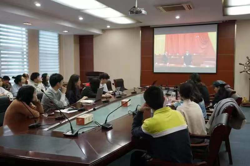4月30日上午10时30分,纪念五四运动100周年大会在北京人民大会堂隆重举行,习近平总书记出席并发表重要讲话。调教漫画 关工委召集党员、入党积极分子、优秀团员青年代表在606楼6317教室认真收看了大会现场直播。