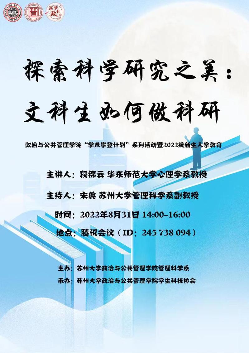 “学术攀登计划”系列活动暨2022级新生入学教育之探索科学研究之美:文科生如何做科研