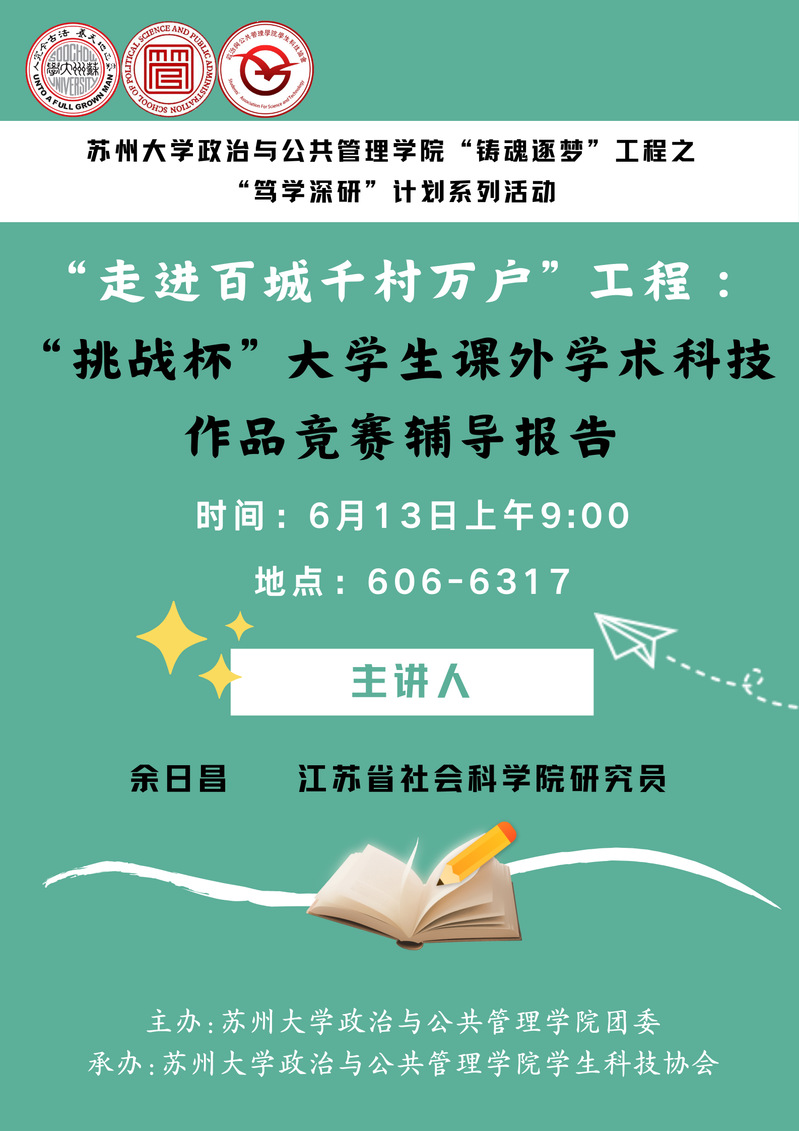 海报 | “走进百城千村万户”工程:“挑战杯”大学生课外学术科技作品竞赛辅导报告