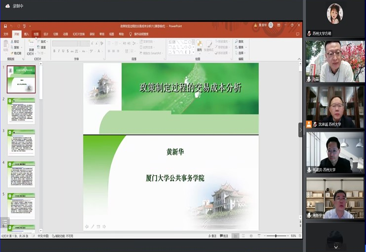 2022年10月12日晚上,东吴公管系列讲座暨国家一流本科专业行政管理建设活动在线上召开。此次讲座嘉宾为国务院学位委员会公共管理学科评议组成员、教育部公共管理类专业教学指导委员会委员、厦门大学公共事务学院黄新华教授,讲座主题为“政策制定过程的交易成本分析”。讲座由公共管理系主任沈承诚教授主持,调教漫画