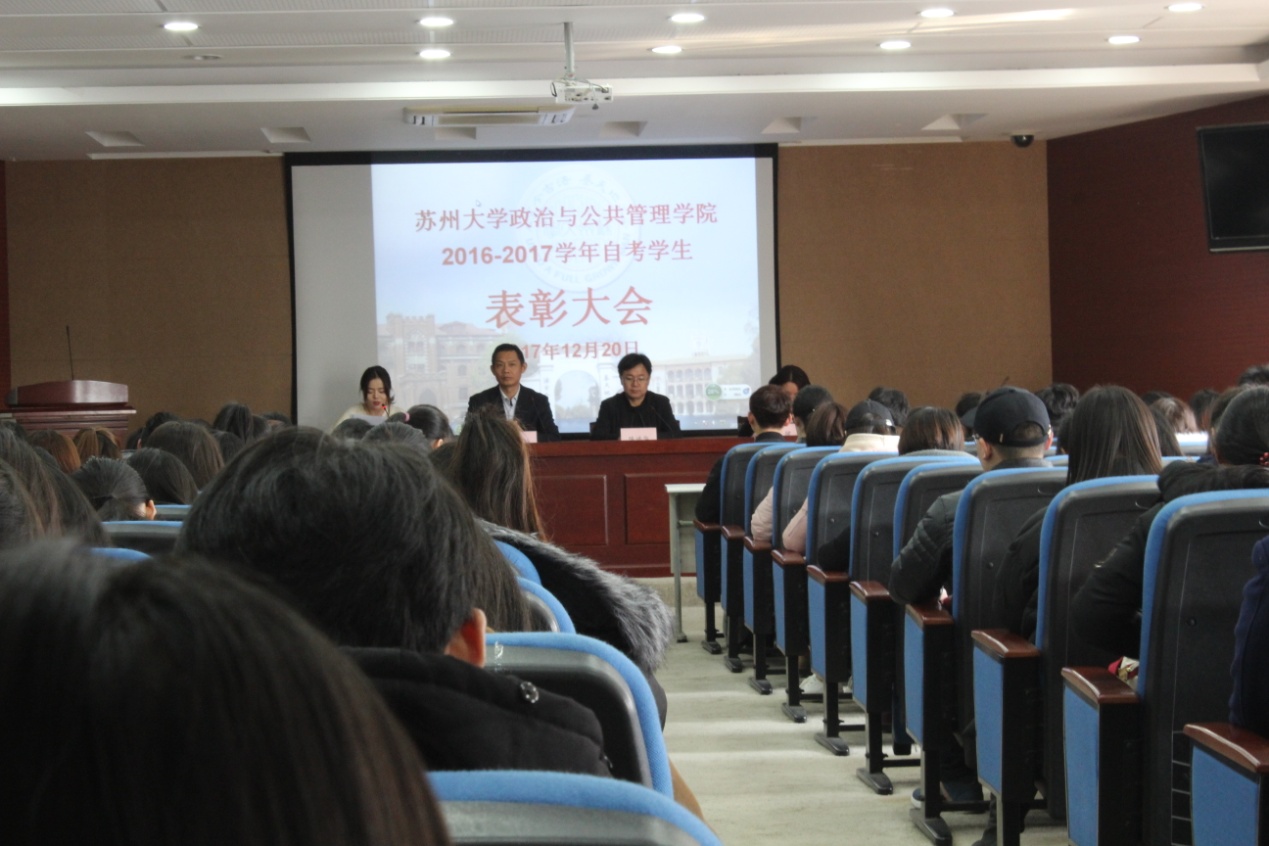 2017年12月20日下午,调教漫画 2016-2017学年自考助学学生奖学金表彰大会在独墅湖校区一期606楼403报告厅隆重举行。学院院长陈进华、副院长吉文灿、院长助理邵健以及各班班主任、获奖学生和17级独墅湖校区新生代表参加了会议。大会由院长助理邵健主持。